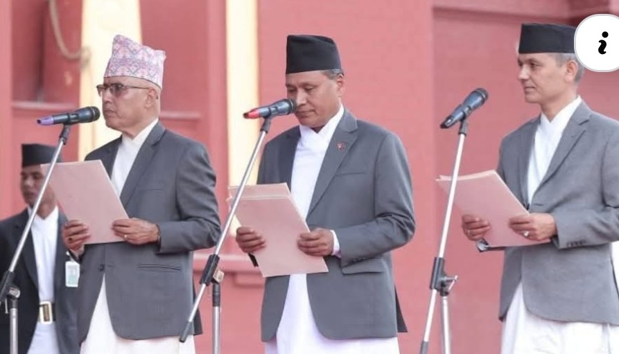 सोमबार राष्ट्रपति भवन शीतल निवासको खण्डहरअगाडि पाल टाँगेर मन्त्रीहरूलाई शपथ दिलाइएको थियो । शपथग्रहण कार्यक्रममा उपराष्ट्रपति रामसहायप्रसाद यादव, प्रधानमन्त्री सुशीला कार्की प्रधानन्यायाधीश प्रकाशमानसिंह राउत, राष्ट्रिय सभा अध्यक्ष नारायण दाहाललगायत उच्चपदस्थ अधिकारी उपस्थित थिए ।