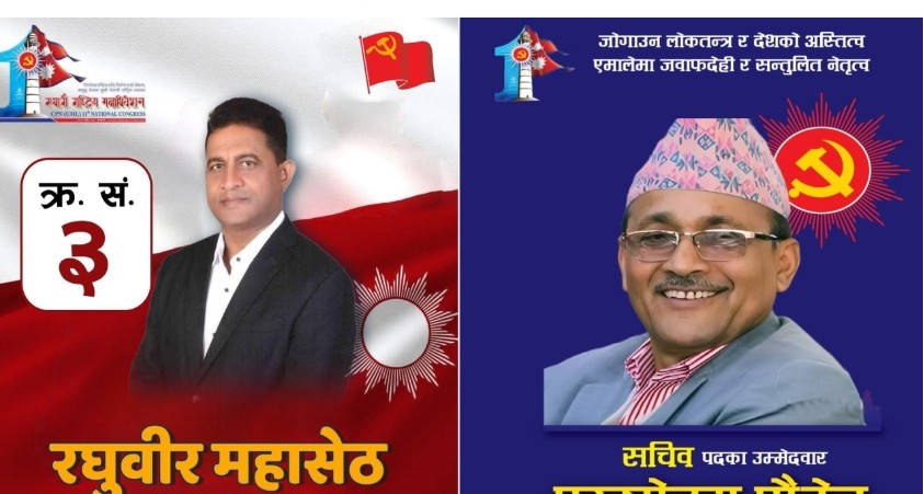 रघुवीर महासेठ उपमहासचिवमा चुनाव लड्दै हुनुहुन्छ भने पुरुषोत्तम पौडेल सचिवमा चुनाव लडिरहनुभएको छ ।